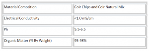• The slab has very high air fill porosity, moderate water holding capacity and balanced pH with very low EC and Sodium (Na) content.
